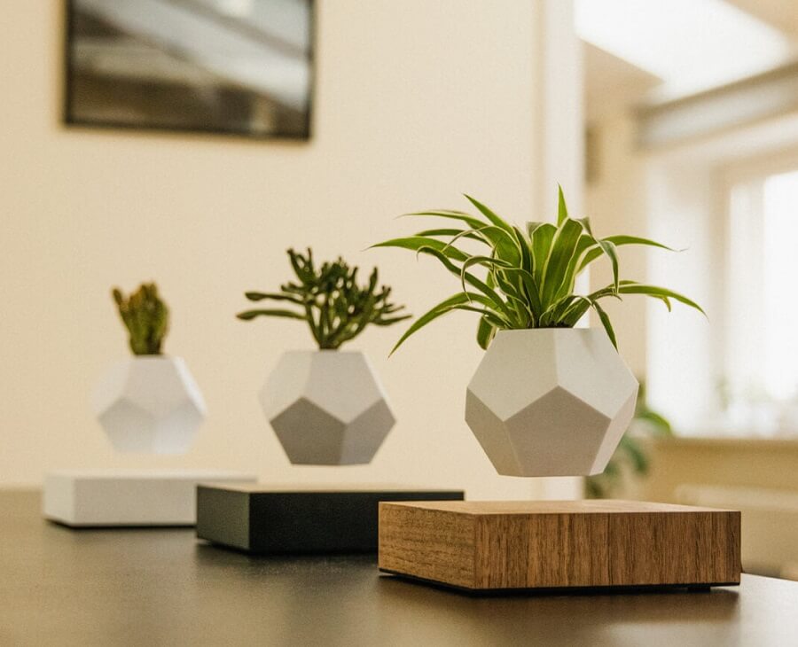 Na dnu, patentirane magnetne tuljave in senzorji obesijo in vrtijo lonec v zraku. Za uporabo tuljav morate enoto priključiti na napajanje. Električni tok bo sprožil magnetne aktivnosti, ki bodo dvignile lonec. Edina slaba stran te enote je, da ne bo delovala, ko se elektrika izklopi. Floating Plant Pot Tudi v SLO Teglc – Lebdeči Izdelki – Kupi Popolno Darilo Za Samo 135€